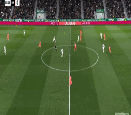 第24分钟,巴萨后防被打穿,阿尔瓦罗-罗德里格斯打门偏出