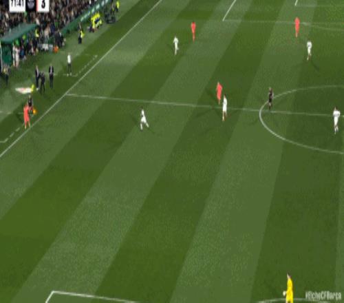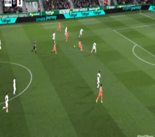 第42分钟,费尔明包抄近距离打门,皮球高出横梁