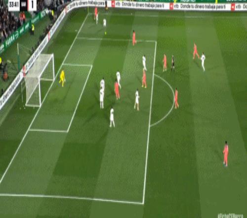 第40分钟,德容冷静回做,费兰-托雷斯推射破门,巴萨2-1!