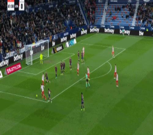第68分钟,巴勃罗-马丁内斯超远距离打门尝试,皮球高出球门