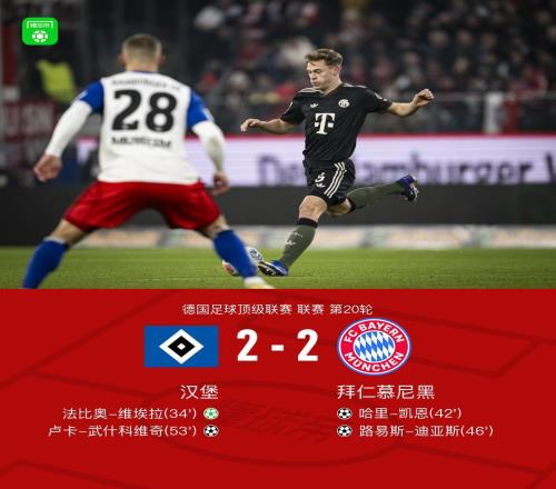 2轮不胜!拜仁22汉堡先赛仍9分领跑凯恩迪亚斯建功基米希送点